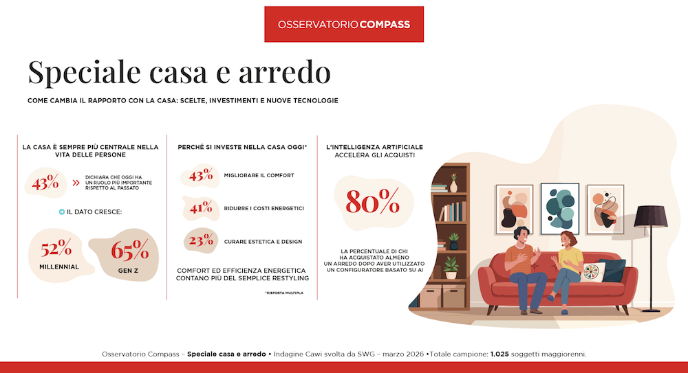 Il Buy Now Pay Later (BNPL) si afferma come uno strumento utile per il 68% delle persone per sostenere spese di restyling fino a 5.000€, con punte dell’84% tra la Gen Z e del 77% tra i Millennials. Addirittura, il 38% degli acquirenti aumenterebbe il budget grazie a questa formula flessibile. Luigi Pace, Direttore Centrale Marketing e Innovation di Compass, ha dichiarato: “La casa è sempre più centrale nelle scelte d’acquisto degli italiani, che oggi guardano con maggiore attenzione a comfort, efficienza energetica e funzionalità”. Secondo Pace, l’evoluzione dei percorsi di acquisto vede i social come fonte di ispirazione e l’intelligenza artificiale come acceleratore della progettazione, mentre Compass supporta i consumatori con soluzioni che facilitano la gestione del budget familiare e incrementano le vendite per i partner commerciali.