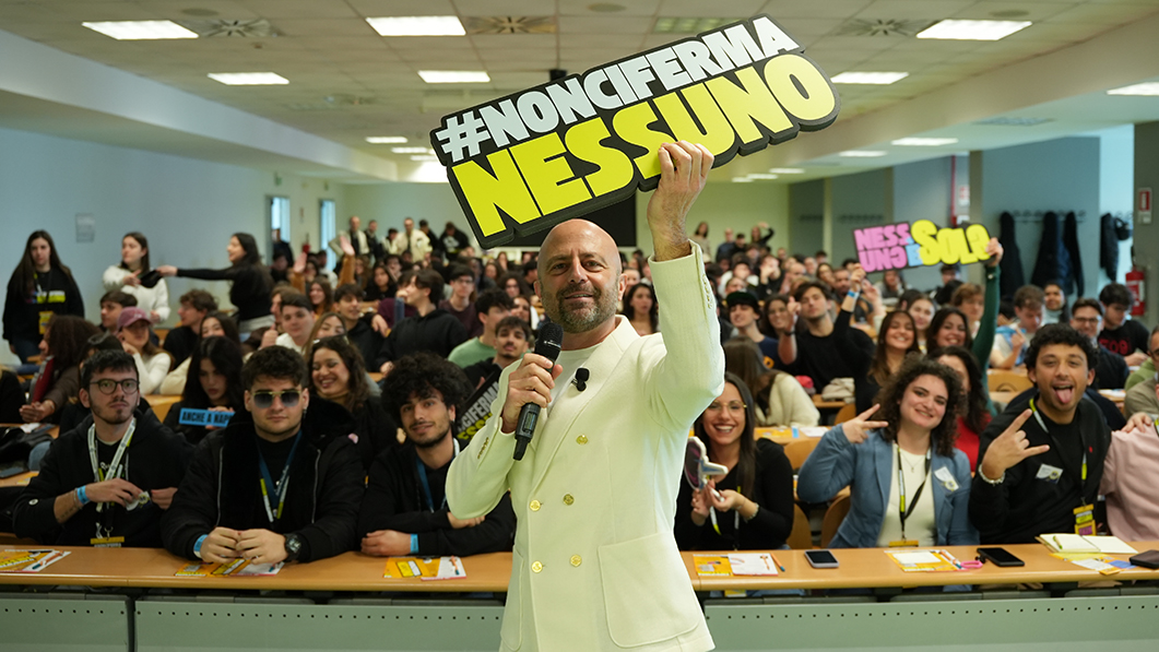 Ogni edizione del tour si arricchisce di un nuovo tema, scelto con la partecipazione attiva della community. Per il 2025, il claim è “Nessunə è solə”. «È una frase che sorprende – spiega Abete – perché racchiude una verità parziale e una grande illusione. Crea dialogo, confronto e voglia di riflettere. L’obiettivo è muovere le coscienze e avviare un percorso condiviso nelle nuove solitudini». La campagna #NonCiFermaNessuno è ormai un punto di riferimento stabile nel calendario accademico, insignita della Medaglia del Presidente della Repubblica, Sergio Mattarella, e sostenuta dal Ministero dell’Università e della Ricerca insieme alla CRUI – Conferenza dei Rettori delle Università Italiane.