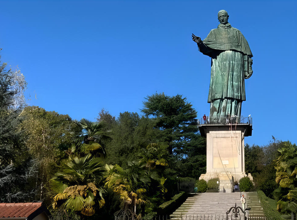 La maestosa statua dedicata a San Carlo Borromeo domina il territorio da oltre tre secoli. Il cardinale Federico Borromeo commissionò l’opera nel XVII secolo per onorare il cugino santo, nato ad Arona nel 1538. Con i suoi oltre 35 metri di altezza, il colosso rientra tra le statue visitabili più alte al mondo e rappresenta ancora oggi un punto di riferimento spirituale e culturale per tutto il territorio del Lago Maggiore.
